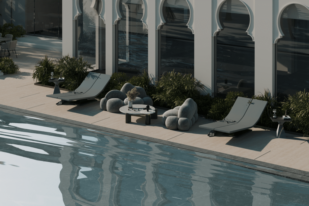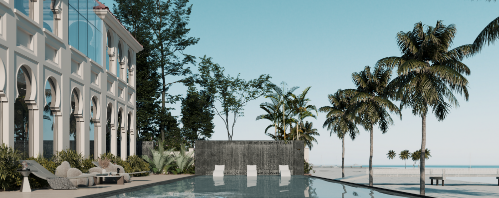 The Palm Landscape project is a custom-designed outdoor environment focused on creating a tranquil and visually engaging setting. Developed to complement nearby architecture, the design integrates palm trees, native vegetation, and water elements with carefully planned pathways and seating areas. The project emphasizes natural beauty, low-maintenance greenery, and sustainable landscaping practices to foster relaxation and harmony with the environment.